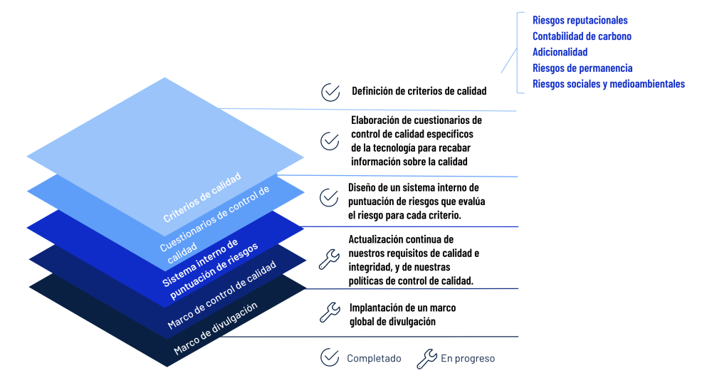 Nuestra ambición es liderar el camino en la gestión de riesgos de proyectos de carbono, la calidad y los protocolos de cumplimiento.