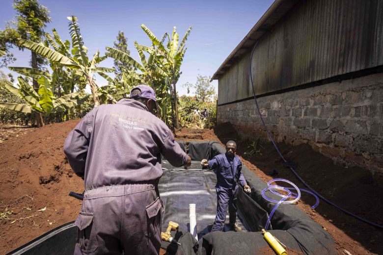 In rural Kenya, the daily routine of families often revolves around cooking meals over traditional stoves fuelled by wood and charcoal. The delicious aroma of food fills the air, but lurking beneath it is a silent danger. The thick smoke that is released when the wood or charcoal are burned not only causes respiratory problems, for women and children, but also contributes to climate change, releasing greenhouse gas emissions into the atmosphere. While gathering or buying the fuel takes significant time and money from Kenyan households. Managing animal manure also poses environmental challenges, as Kenyan farmers lack systems to manage manure from their animals, it is often left untreated and releases methane, a potent greenhouse gas, into the atmosphere.