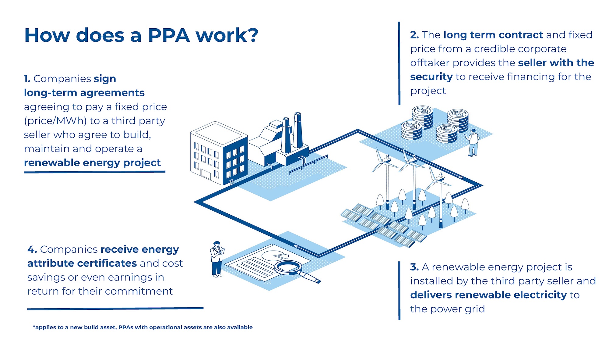 Corporate PPAs enable companies to reach renewable electricity targets at scale, achieve cost savings and manage long term energy price risks.